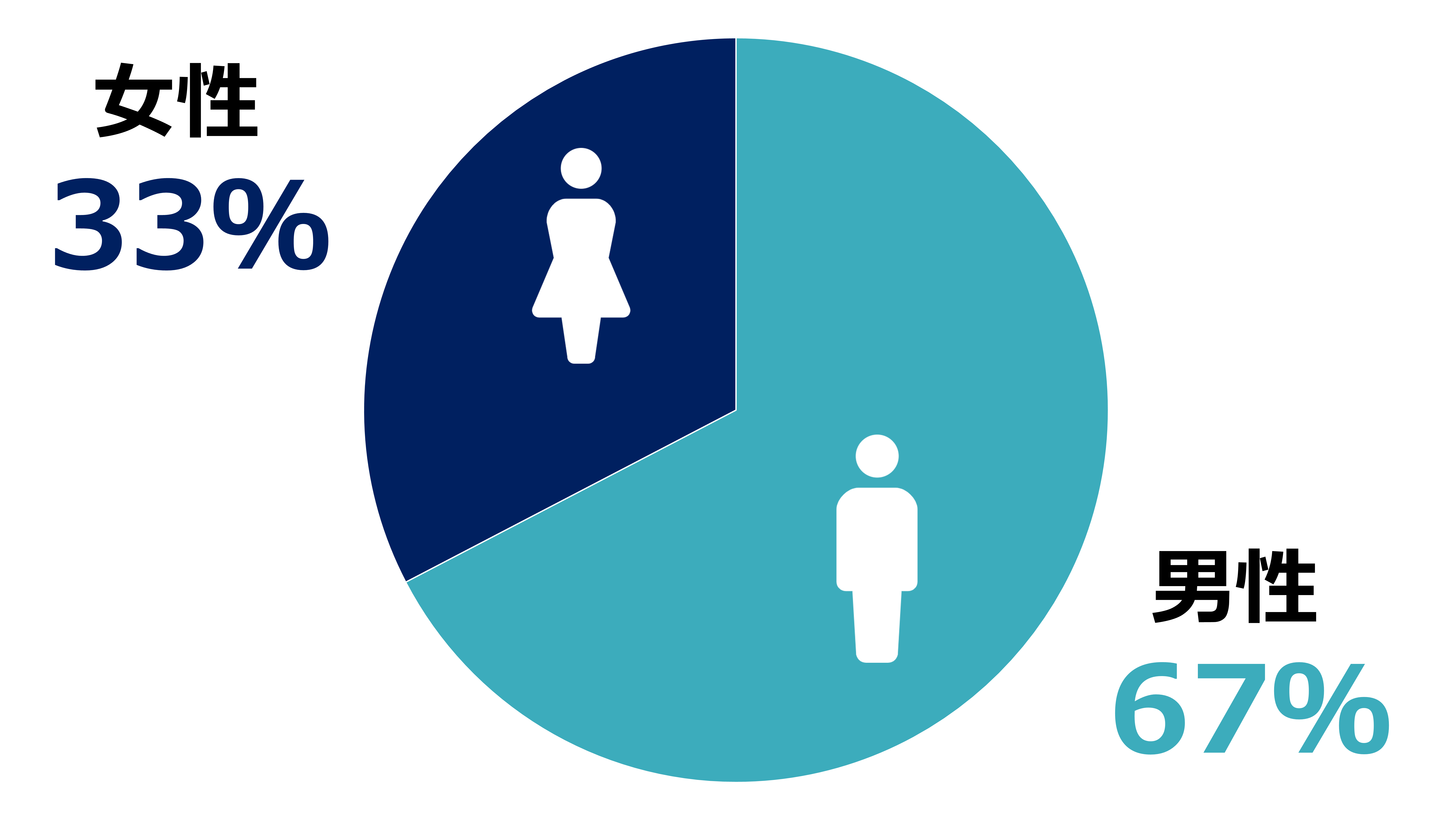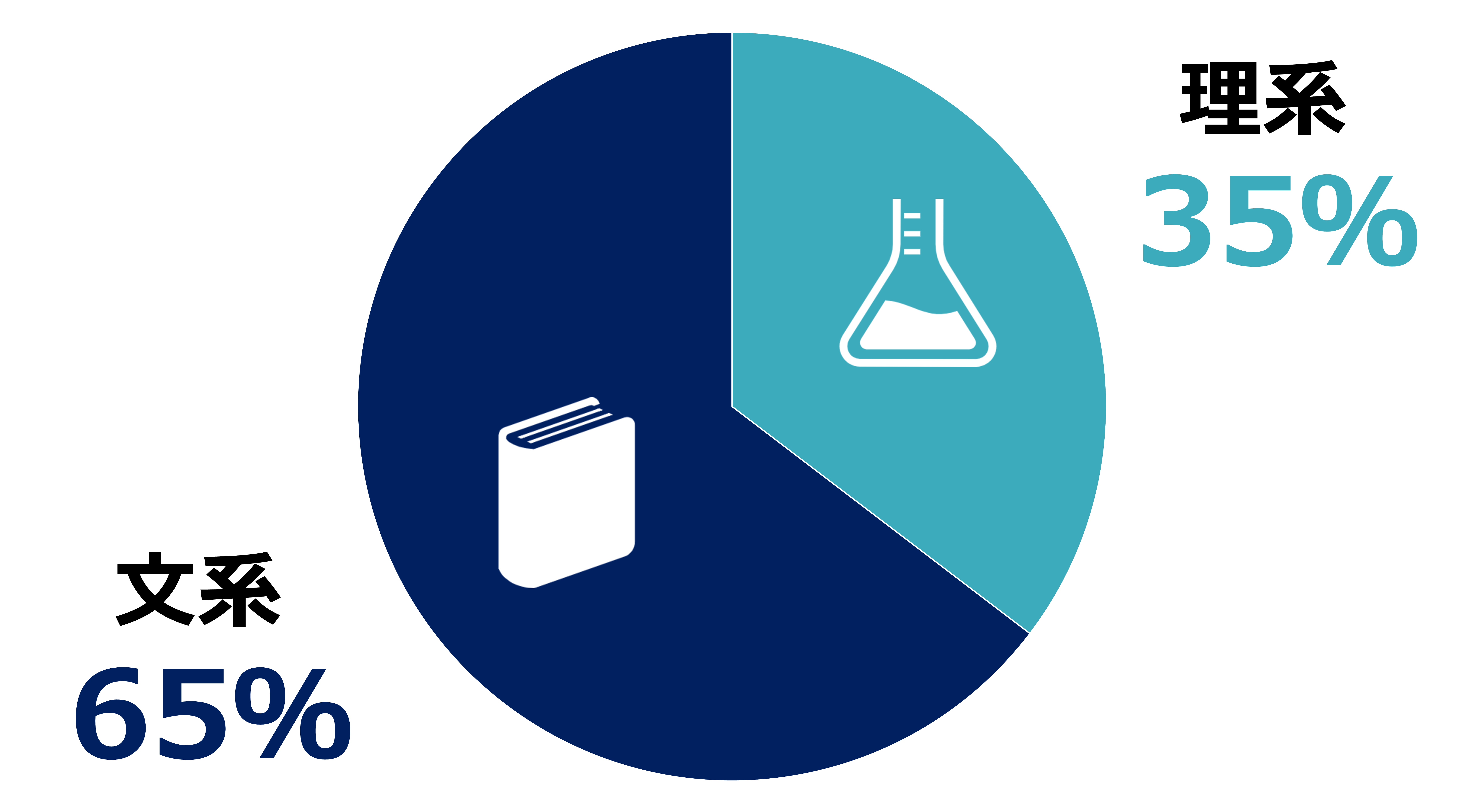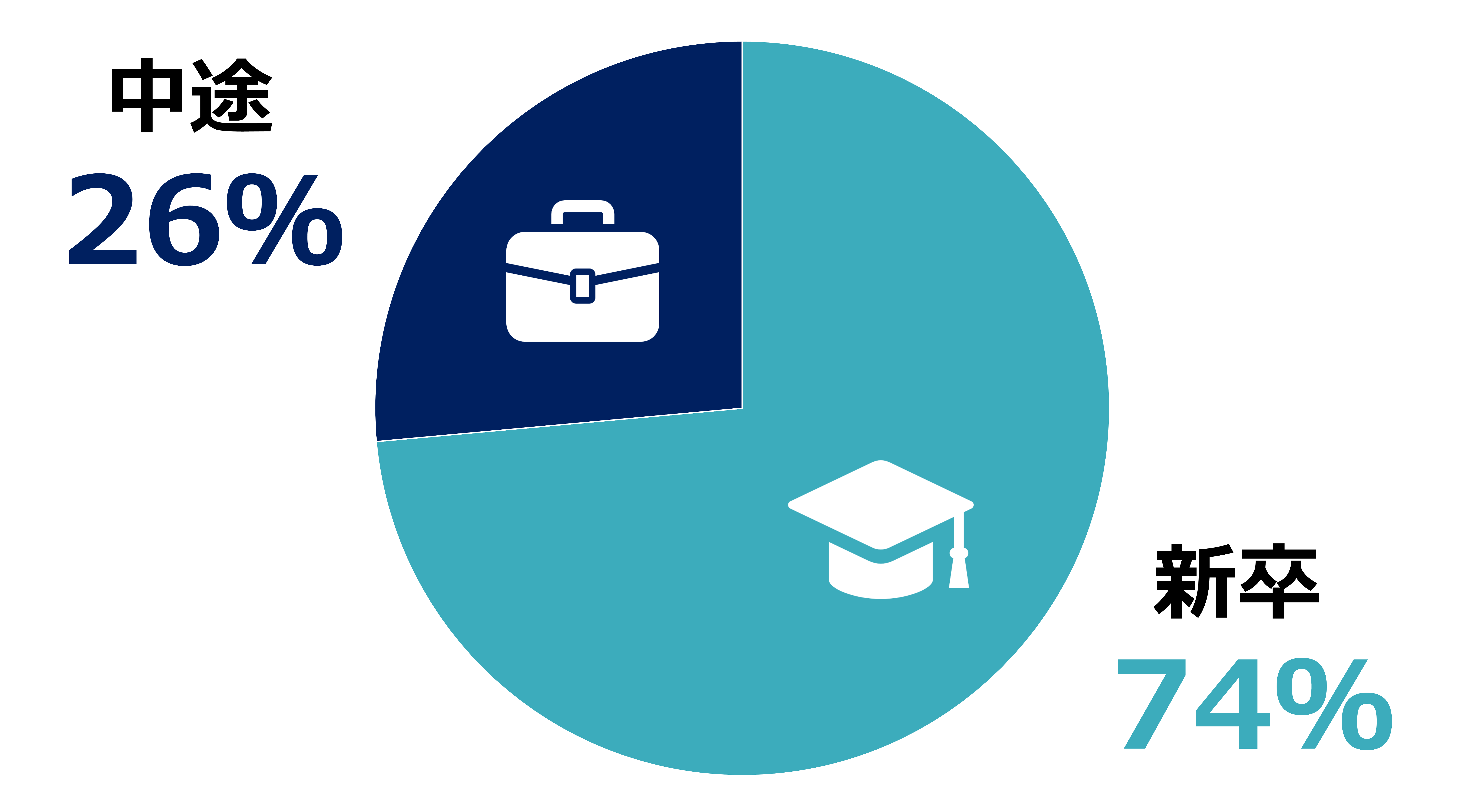 全社でみると男性が多くなっていますが、近年の新卒採用