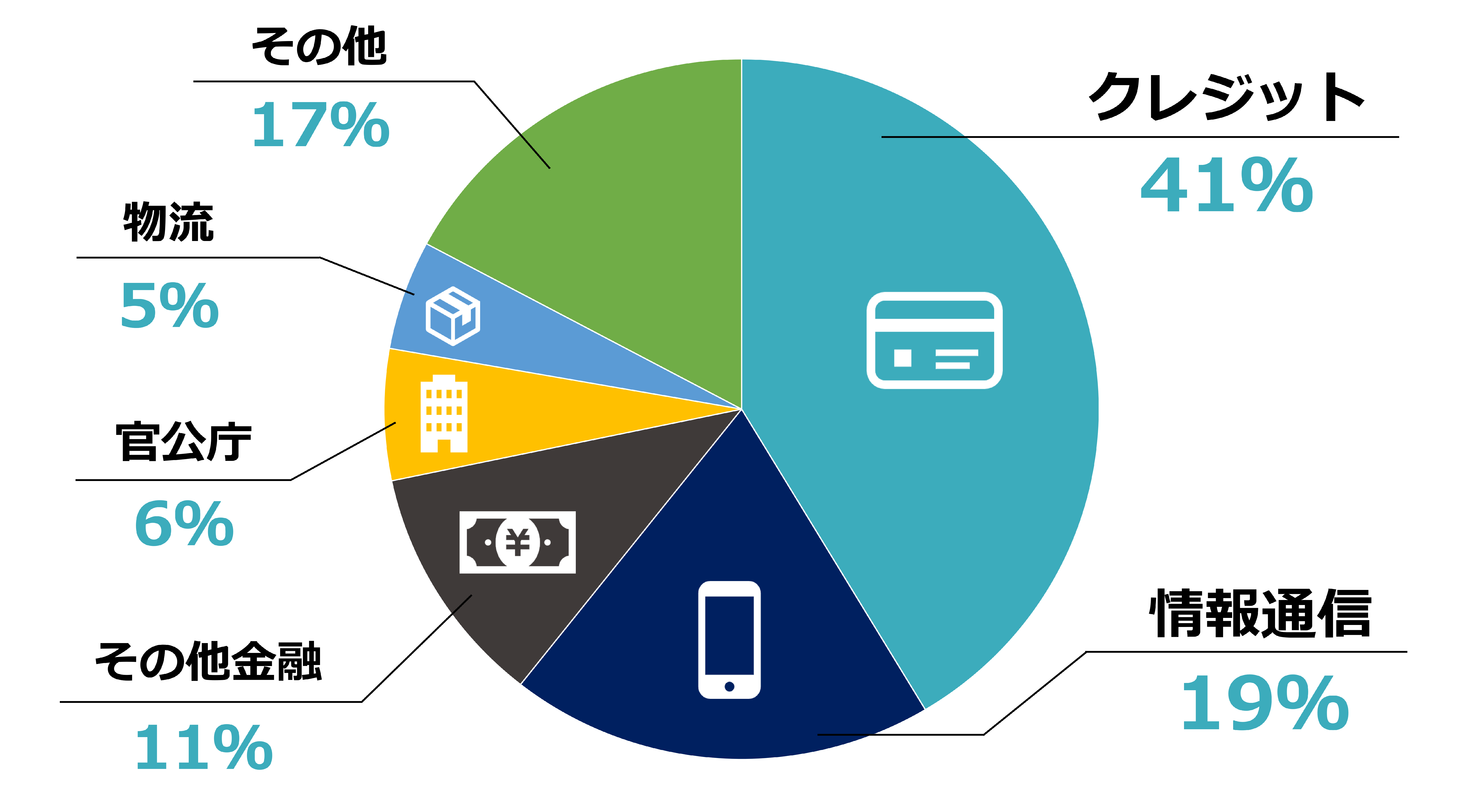 クレジット・金融関連が多く、全体の50%にのぼります。