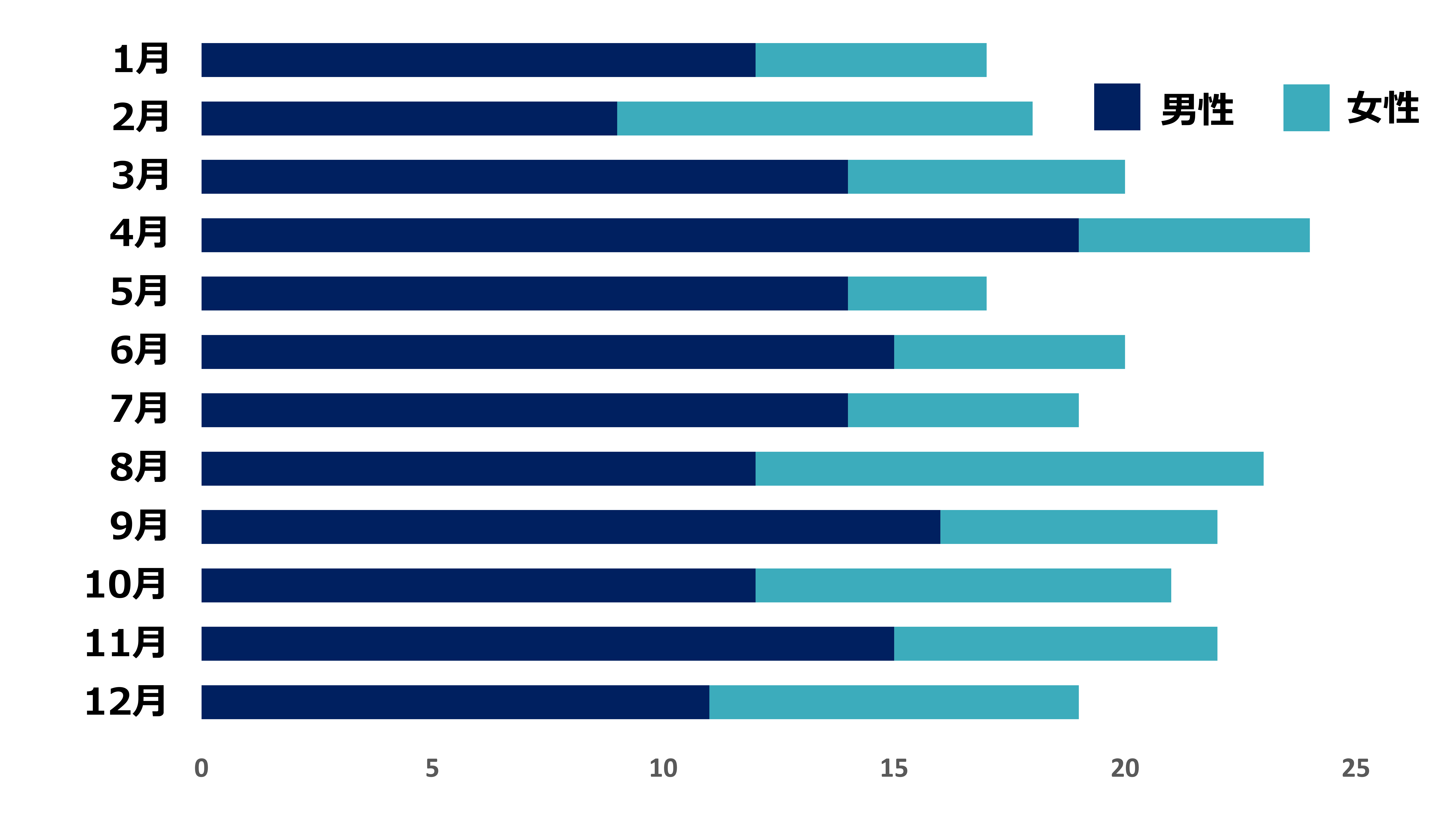 HASでは4月生まれの社員が最も多く、続いて同率で8月、9月・11月といった順でした。